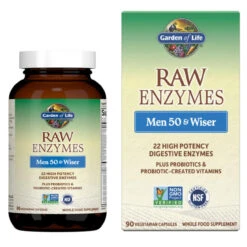 Garden of Life’s RAW Enzymes Men 50 and Wiser is a digestive support supplement formulated specifically for Men 50+. This supplement features 22 powerful digestive enzymes to support digestion, digestive comfort and nutrient uptake. In addition to 22 digestive enzymes this formula also features probiotics as well as vitamins in a vegetarian friendly capsule.
