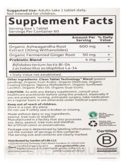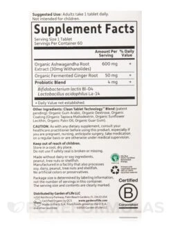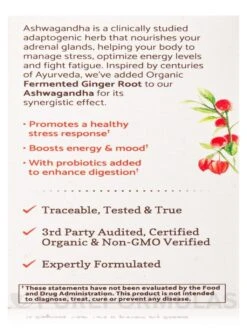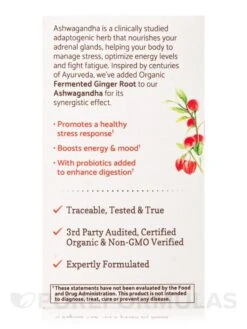 Discover the power of Ashwagandha, a clinically-proven adaptogenic herb that supports your adrenal glands to better cope with stress, increase energy, and reduce fatigue. This formula is fortified with Organic Fermented Ginger Root, which has been used for centuries in Ayurveda for its complementary benefits. Experience the benefits of traditional wisdom and modern science in one convenient bottle with Garden of Life.