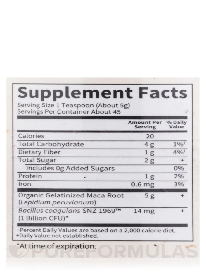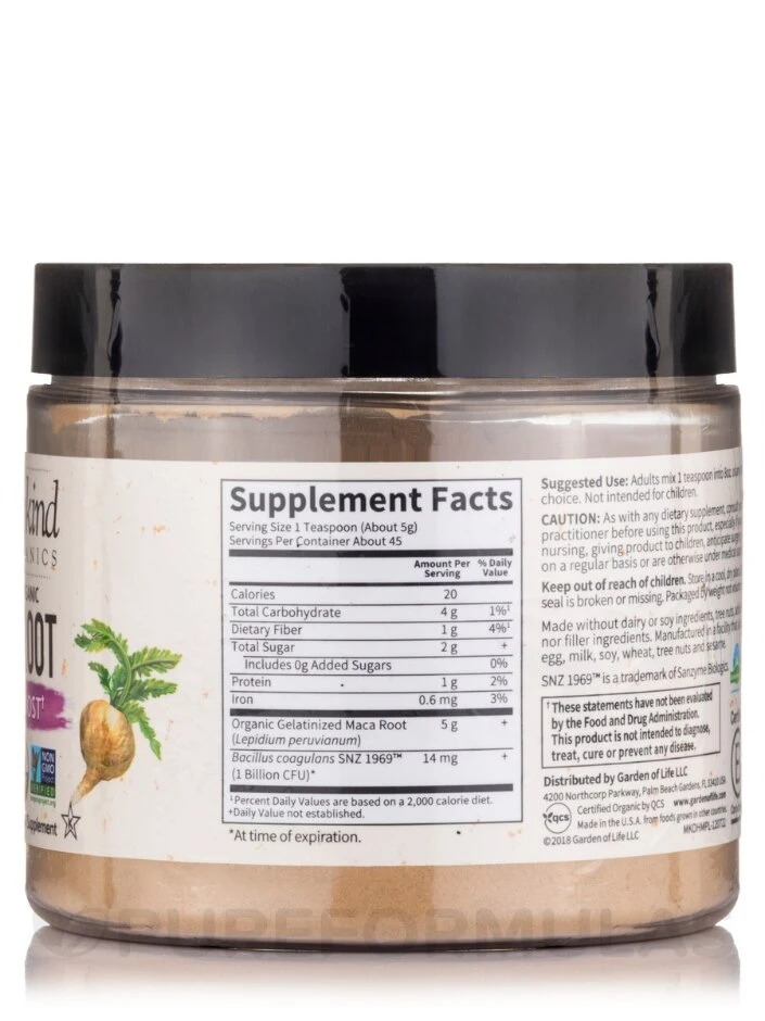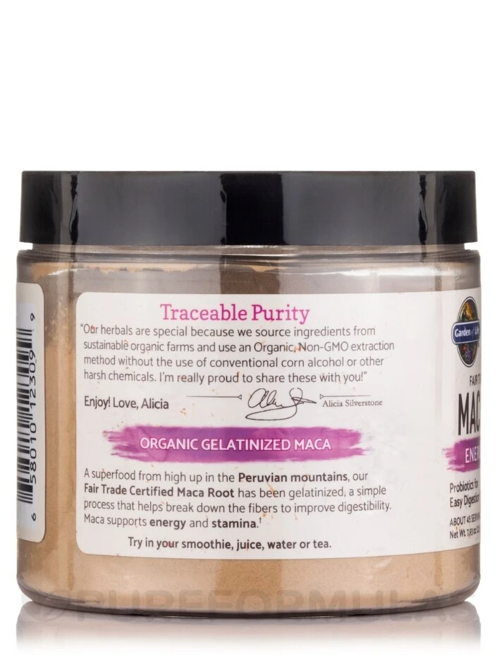 Looking for a natural energy boost? Look no further than our Fair Trade Certified Maca Root, sourced from the mountains of Peru. This mykind Organics Maca Root has been gelatinized for improved digestibility, and we’ve even added probiotics for extra digestive support. Simply add a spoonful to your favorite smoothie, juice, water, or tea and feel the benefits of this superfood for yourself. Try it today!
